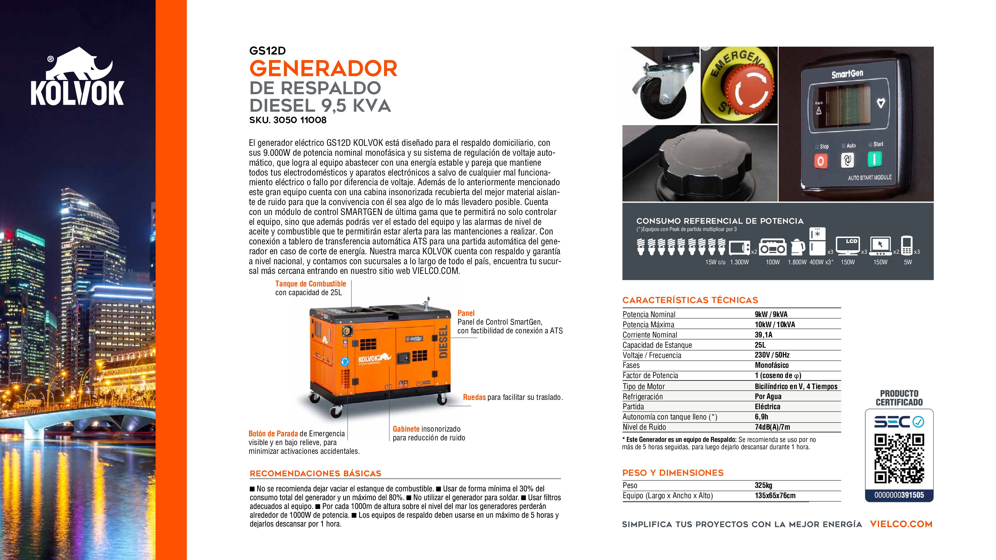Perfecto para empresas, obras y hogares de alto consumo. Operación silenciosa y eficiente.