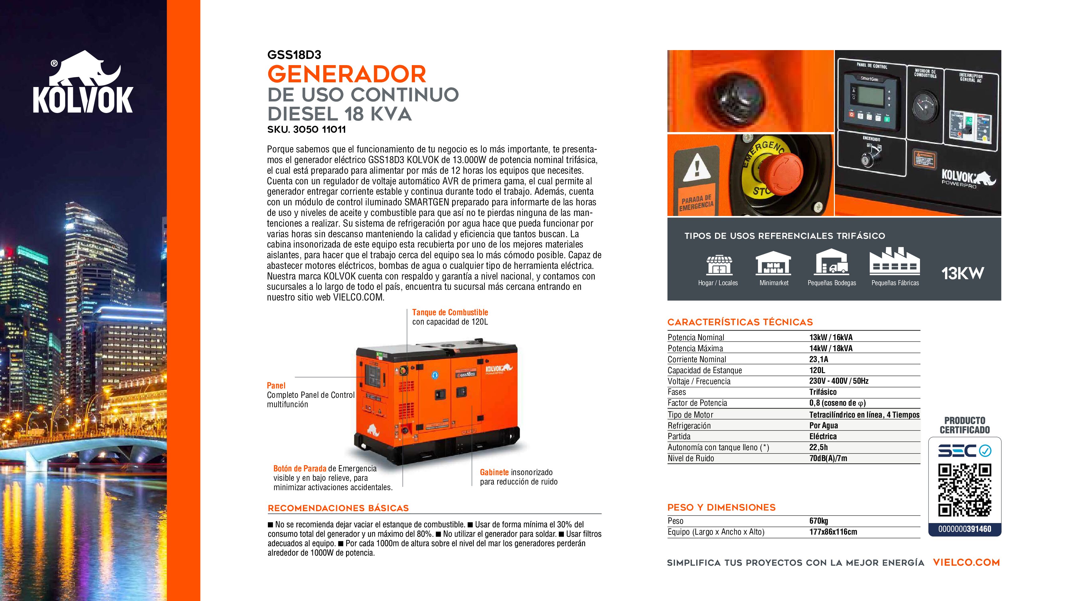 • Potencia: 18 kVA