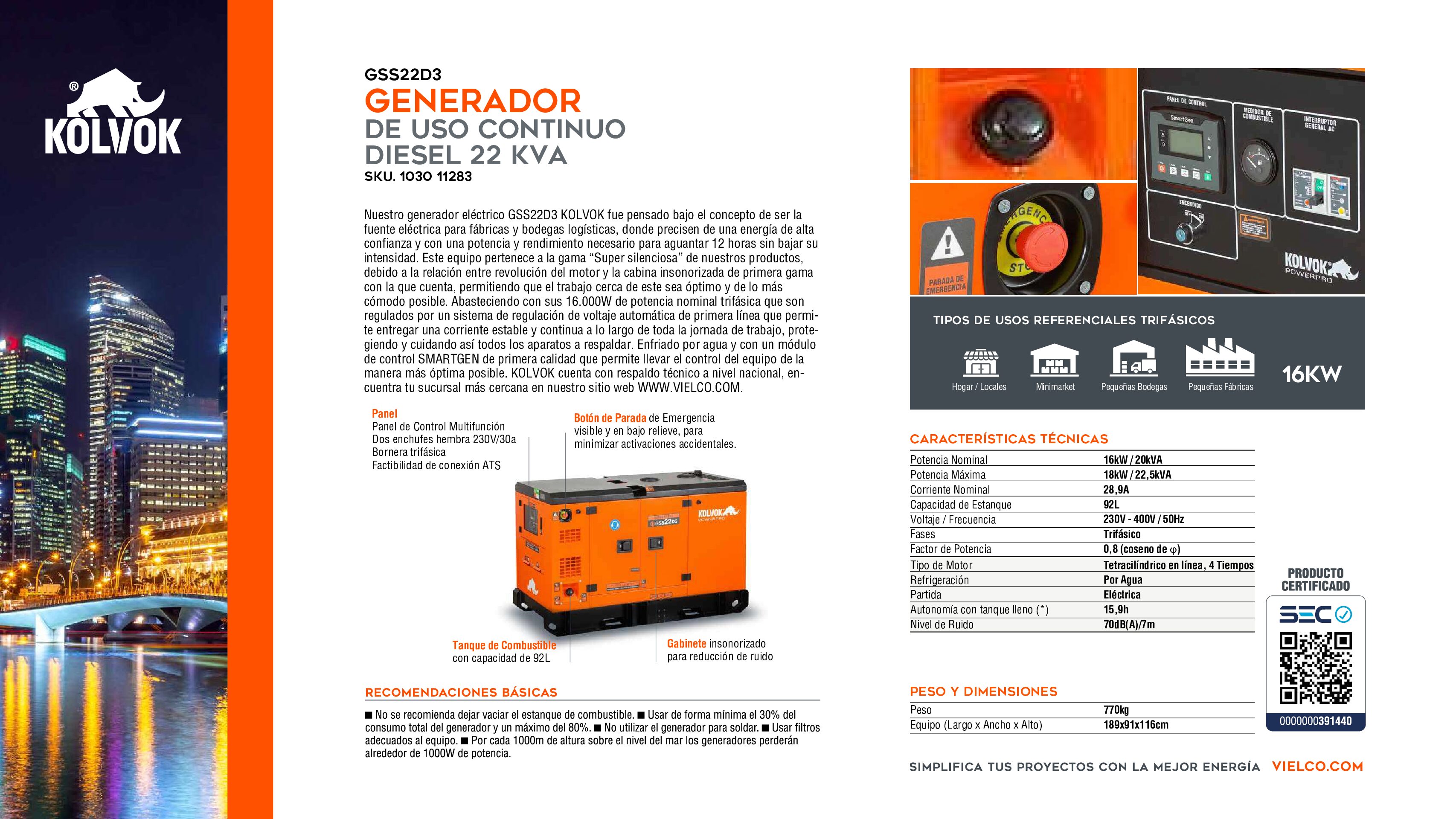 Máxima potencia para empresas, industrias y faenas que requieren energía constante.